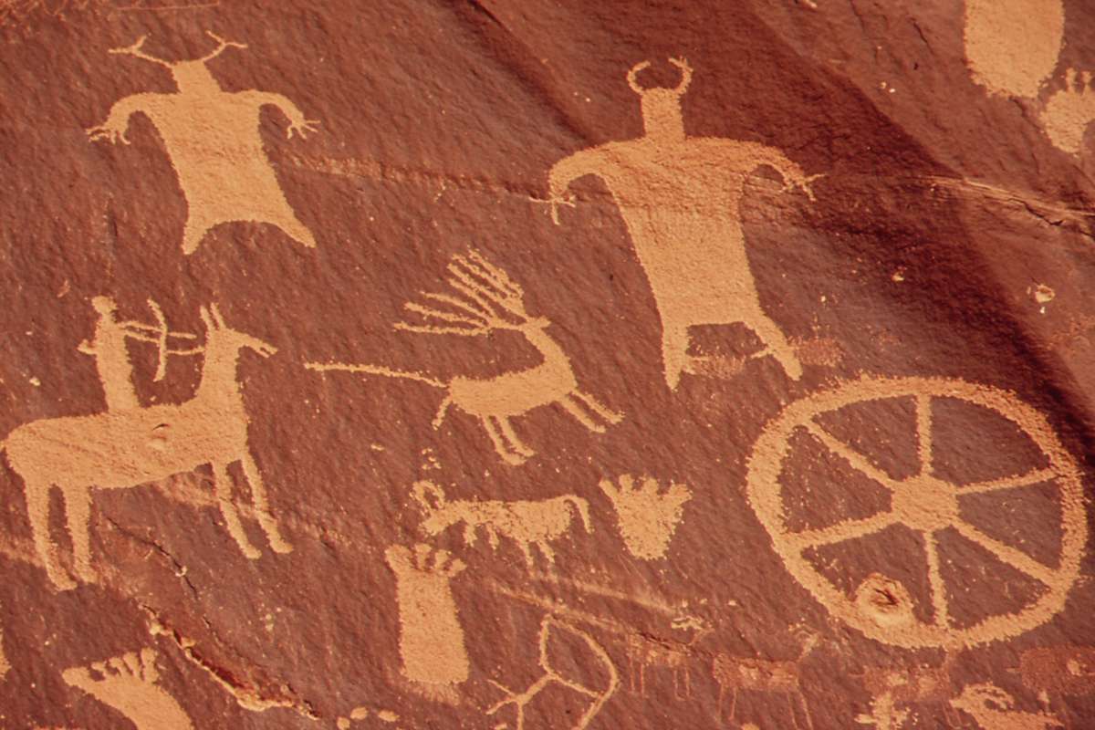 Les œuvres les plus anciennes sont attribuées aux Anasazis, qui ont habité la région d'environ 500 avant JC à 1 350 après JC. Les pétroglyphes plus récents (de couleur plus claire) sont attribués aux Utes, qui vivent encore dans la région des Four Corners.